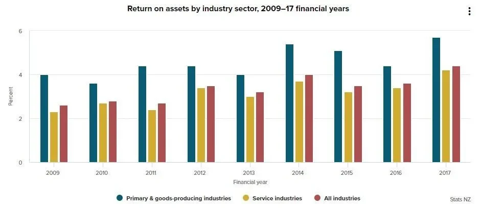 The attached photo is from stats.govt.nz, which demonstrates that the average Return On Assets for NZ business sits below 5%.