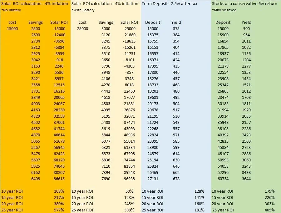 And by the way, we aren't telling you NOT do do term deposits or stocks. Because in the scheme of things, solar is a small investment. Compared to that home you've bought, its a mickey mouse investment. But its totally worth doing.